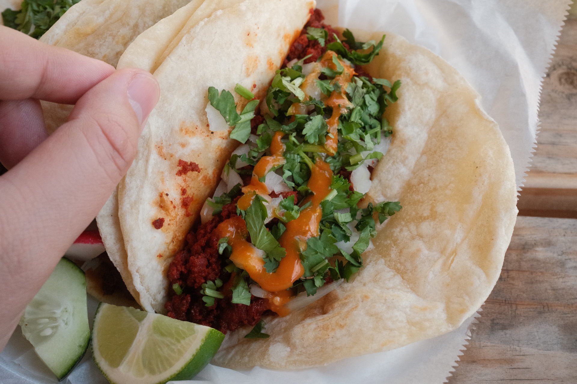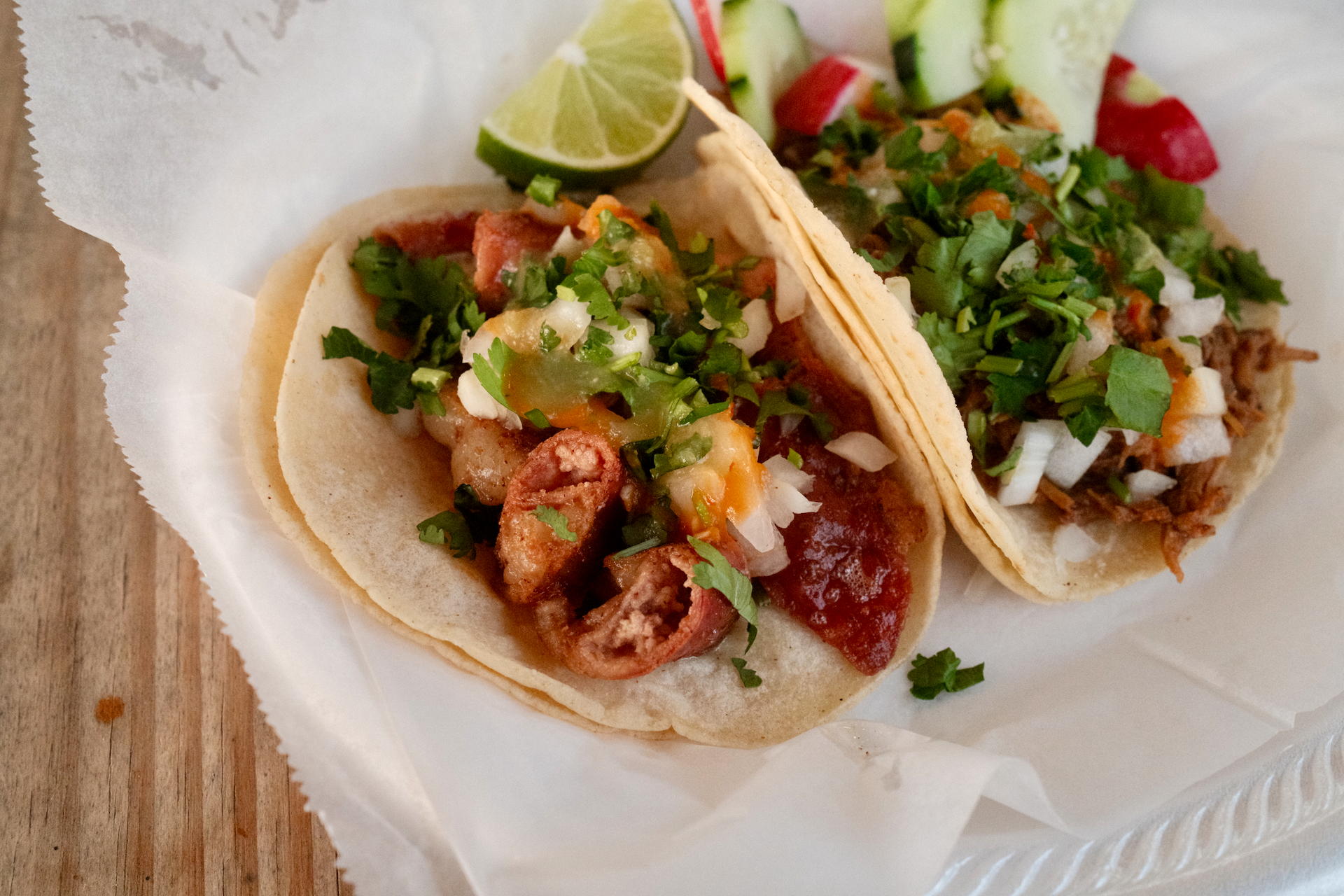 I got a bunch of tacos: they’re priced well, ranging from $3 to $4 each, and they’re generously sized. I was pretty full after 3 tacos…and then I got 2 more for fun. I got: birria, campechano, chorizo, pastor, and tripas.